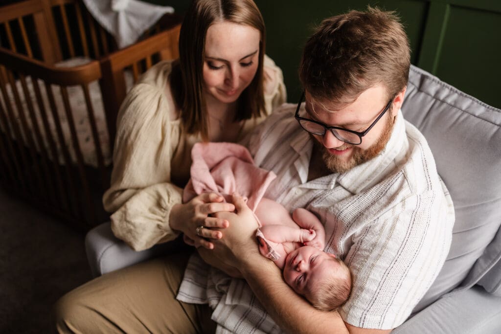 We took these photos over the course of two days because my sweet girl was cluster feeding. If she wasn’t nursing, she was almost always crying and we were barely able to get a good family portrait.